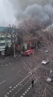 En esa ma帽ana, los manifestantes queman edificios gubernamentales, video de la quema de la Procuradur铆a general en Almaty
