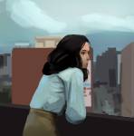 Luciría como una vieja cámara fotográfica de los 90s, con aberración cromática, desenfoque y un feo contraste por el flash. Si te das cuenta a los detalles como los televisores potones, los VHS y la TV por cable; Hilda ocurre en esa década, a lo más finales-principios de los 00s.